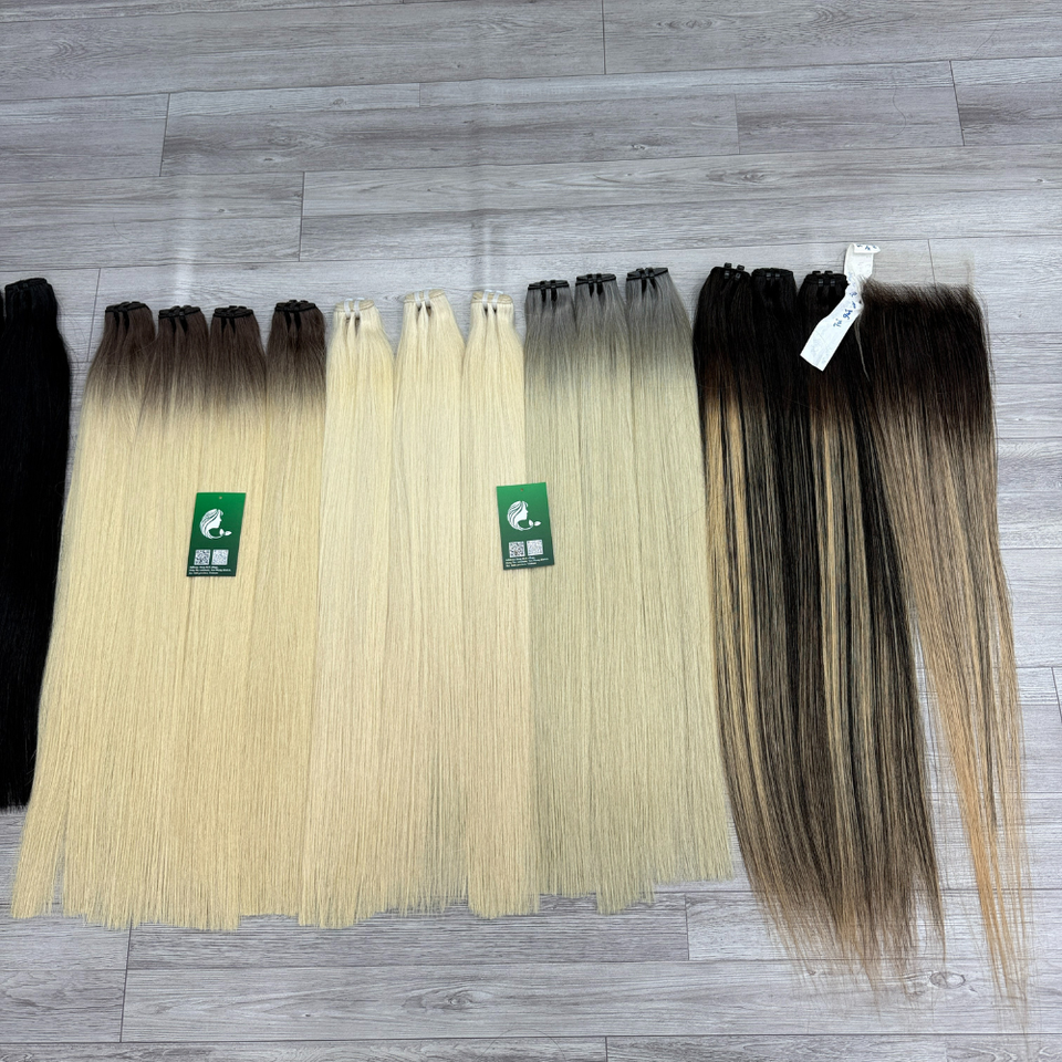 เครื่องมัดผมสีบลอนด์อ่อนแบบคู่สุดฮิตสีบลอนด์อ่อนมีรากสีบลอนด์อ่อน