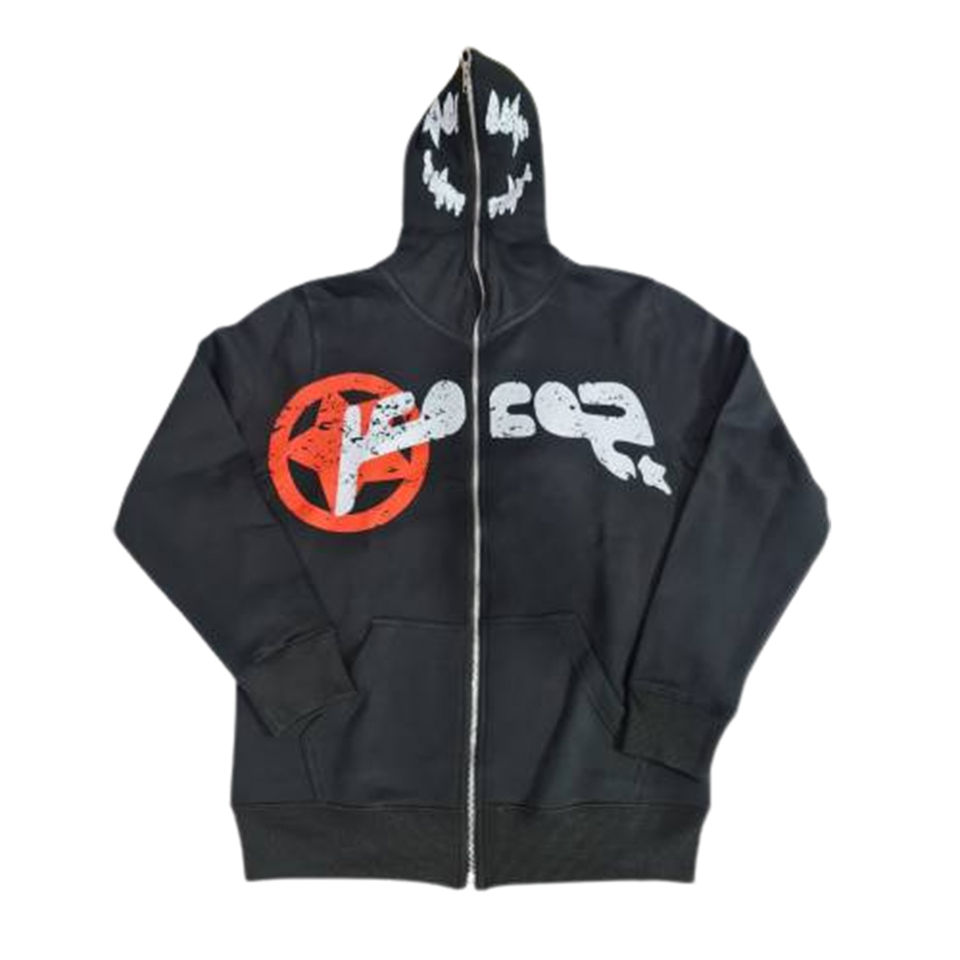 เสื้อฮู้ดดี้ผู้ชายแฟชั่นสุดฮิต ผ้าฝ้ายฟลีซ 100% พิมพ์ลายดิจิทัล ลุคทำเก่า ซิปยาวเต็มตัว ดีไซน์บุซับในสำหรับฤดูหนาว สีพื้น