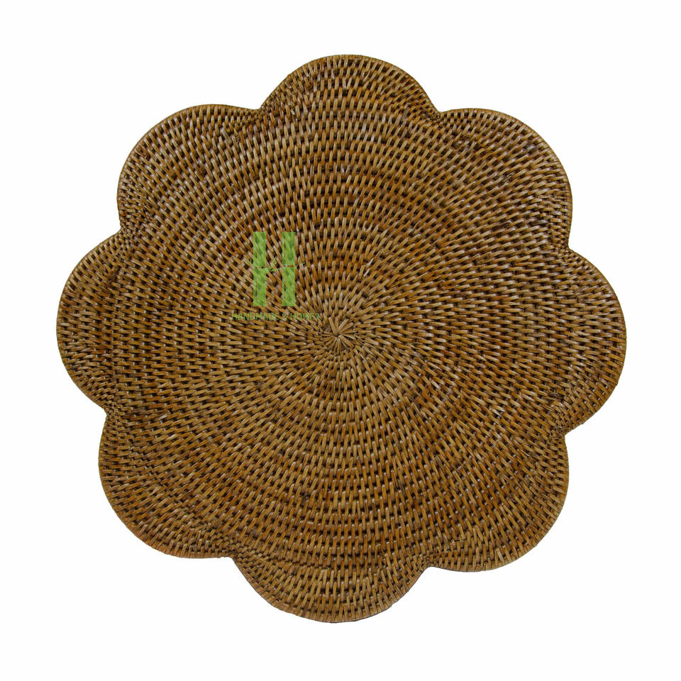 จานรองอาหารหวายธรรมชาติสานมือ งานฝีมือยอดนิยมสำหรับตกแต่งโต๊ะงานแต่งงาน แผ่นรองจานลายหยักจากเวียดนาม