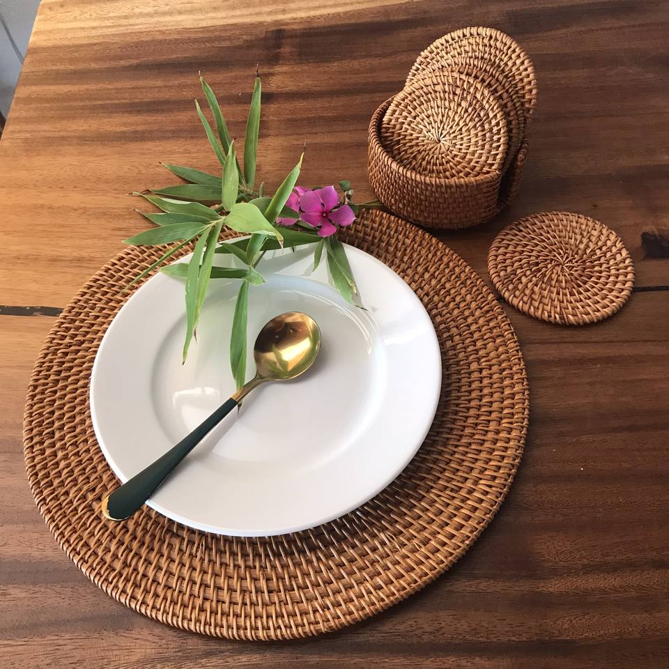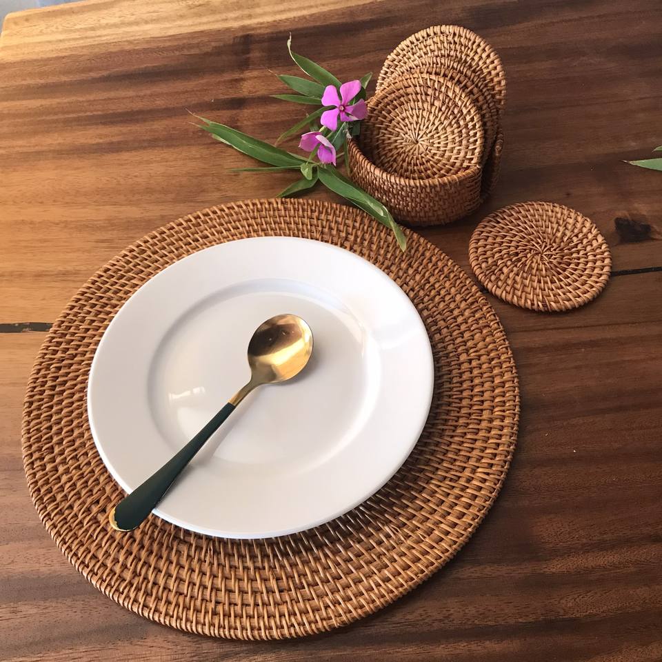 เสื่อรองจานหวายทรงกลมผ้าทอมือในเวียดนามสำหรับงานเลี้ยงงานแต่งงาน