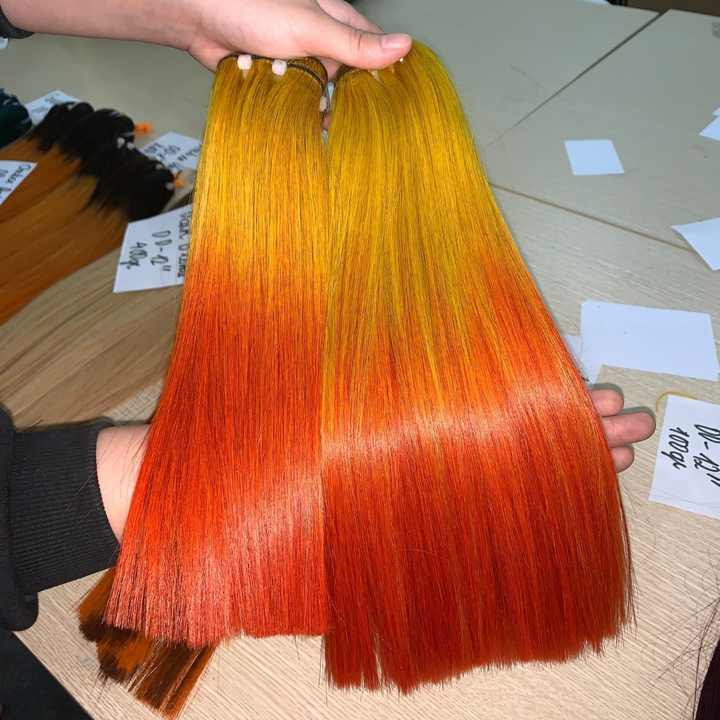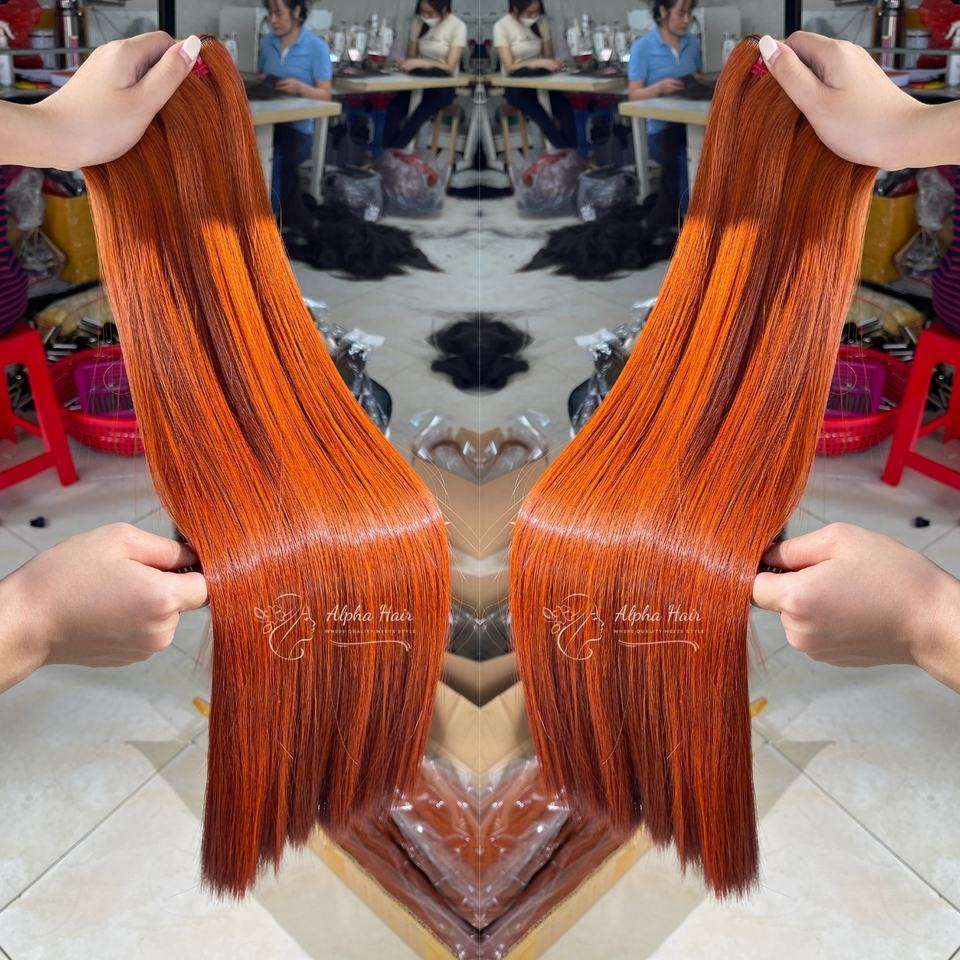 วิกผมมนุษย์แท้จากเวียดนามสีส้มสำหรับต่อผมตรงเรียบเนียนระดับพรีเมี่ยม