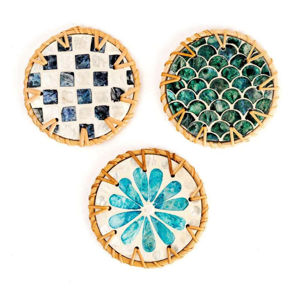 ชุดจานรองแก้วทรงกลม 6 ชิ้น ลายดอกไม้สีเขียว ประดับมุก สำหรับเครื่องดื่ม อุปกรณ์บาร์ ของตกแต่งบ้าน