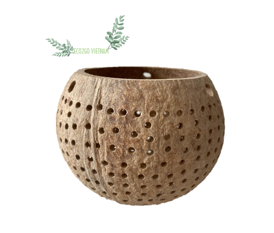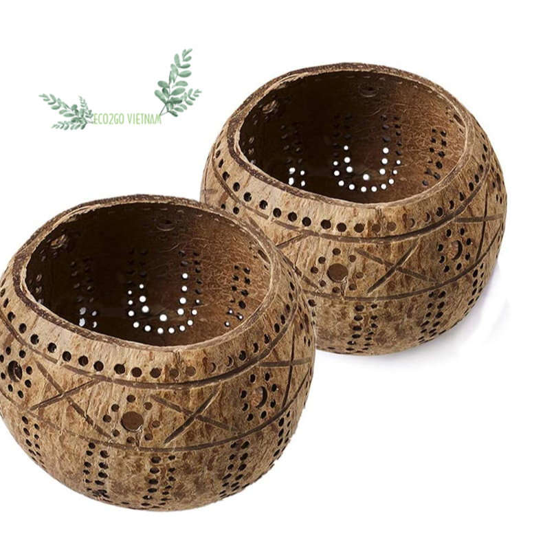 ที่ใส่ชากะลามะพร้าวแบบ2025ที่ใส่เทียนกะลามะพร้าวพร้อมเลเซอร์แกะสลักโลโก้ Eco2go จากประเทศเวียดนาม