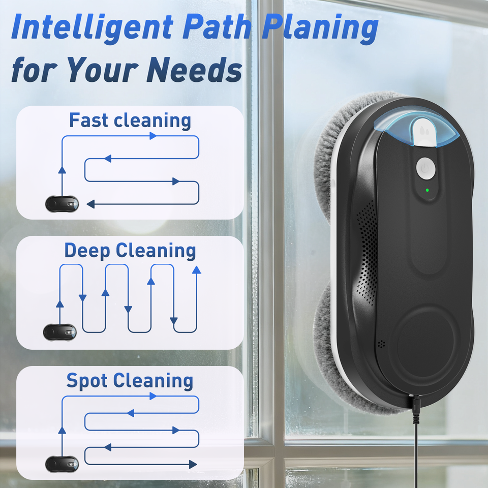 หุ่นยนต์ทำความสะอาดกระจกไฟฟ้ายอดนิยมสำหรับหน้าต่างภายนอกอาคาร - ควบคุมผ่านแอป 3+ โหมด เครื่องทำความสะอาดอัตโนมัติเต็มรูปแบบ