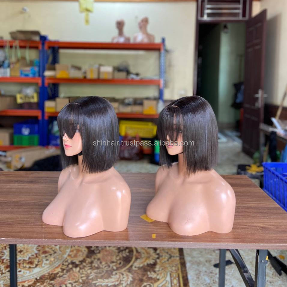 วิกผมแท้แบบมีหน้าม้า ทรงบ๊อบ ผมตรง วิกผมเวียดนามแบบไม่ผ่านกระบวนการ วิกผมลูกไม้ด้านหน้า กำลังเป็นที่นิยม สำหรับผู้หญิงผิวสี