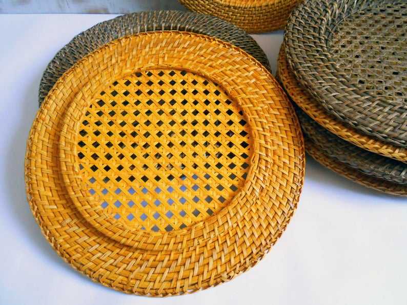 แผ่นรองจานทรงกลมจากปอกระเจาและหญ้าทะเล ดีไซน์ดั้งเดิม ตกแต่งโต๊ะอาหาร สินค้าขายดี