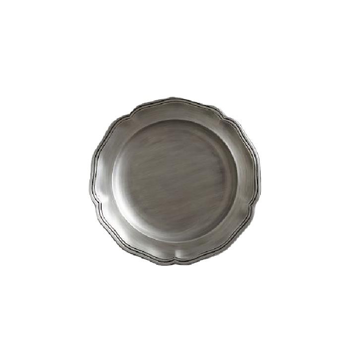 จานเหล็กพร้อมที่ชาร์จสีเงินสำหรับการตั้งค่าโต๊ะแบบร่วมสมัยและอาหารค่ำที่ทันสมัยกำลังมาแรง