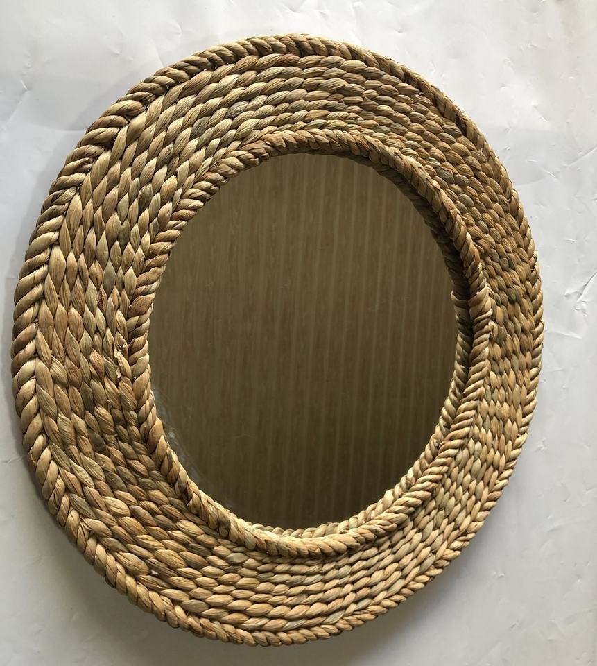 กระจกหวายทรงกลม/วงรีจากธรรมชาติที่ยั่งยืนสำหรับตกแต่งห้องนอนบ้านสไตล์ดั้งเดิมวินเทจสำหรับเป็นของขวัญ