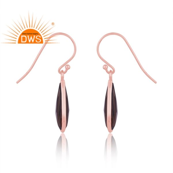 ต่างหูห้อยประดับด้วยพลอยควอตซ์สโมคกี้ธรรมชาติ ชุบทองคำขาวบนเงินแท้ ดีไซน์ทันสมัย ผลิตโดยผู้ผลิตเครื่องประดับตามสั่ง