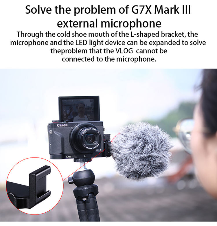 UURig ตัวยึดเพิ่มความยาว R016ลิตร,สำหรับไมโครโฟน Canon G7X Mark III ถอดออกได้เร็วขยายแผ่นติดรองเท้าแบบเย็นสำหรับไฟ LED