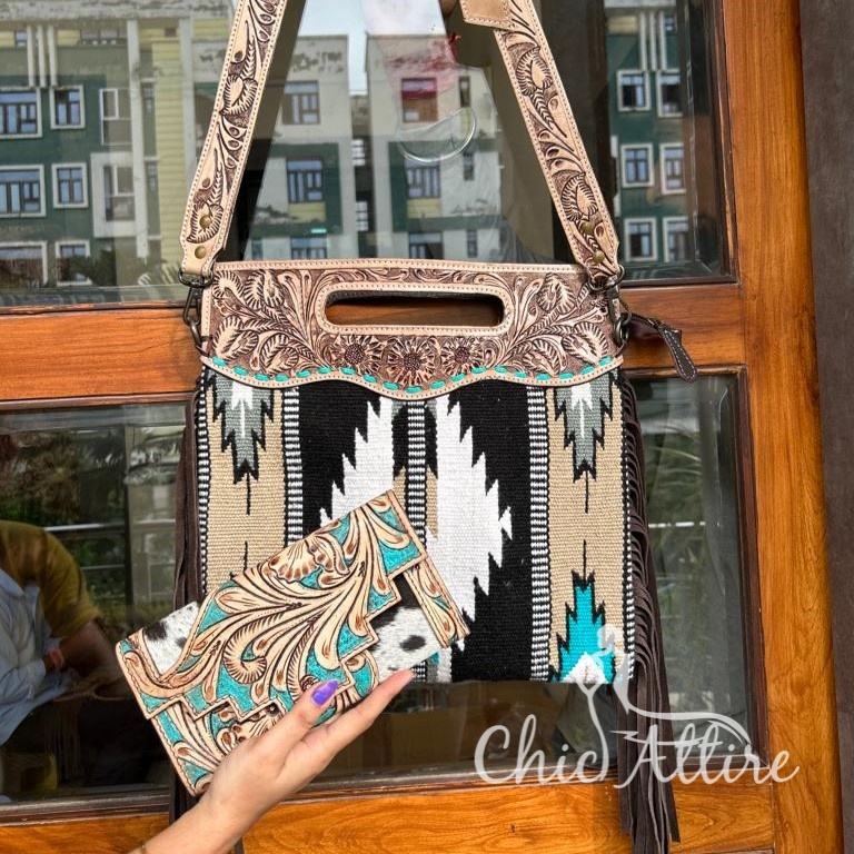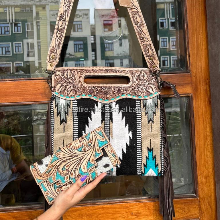 กระเป๋าถือหนังแอซเท็กทรงเครื่องมือสำหรับผู้หญิงกระเป๋าคลัทช์หนังขนแบบดั้งเดิมสไตล์ตะวันตกยอดนิยม