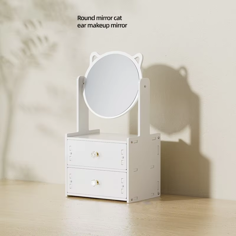 กระจกแต่งหน้าหูแมวโต๊ะกระจกแบบหมุนได้พร้อมกระจกดีไซน์ใหม่
