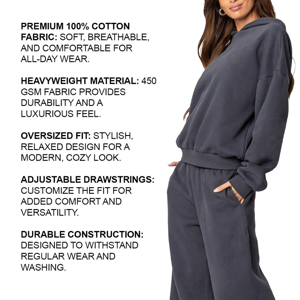 เสื้อมีฮู้ดสำหรับผู้หญิงสุดฮอตผ้าฝ้าย100% พรีเมี่ยมดีไซน์โอเวอร์ไซส์พร้อมสายรัดที่ปรับได้น้ำหนักได้450 GSM