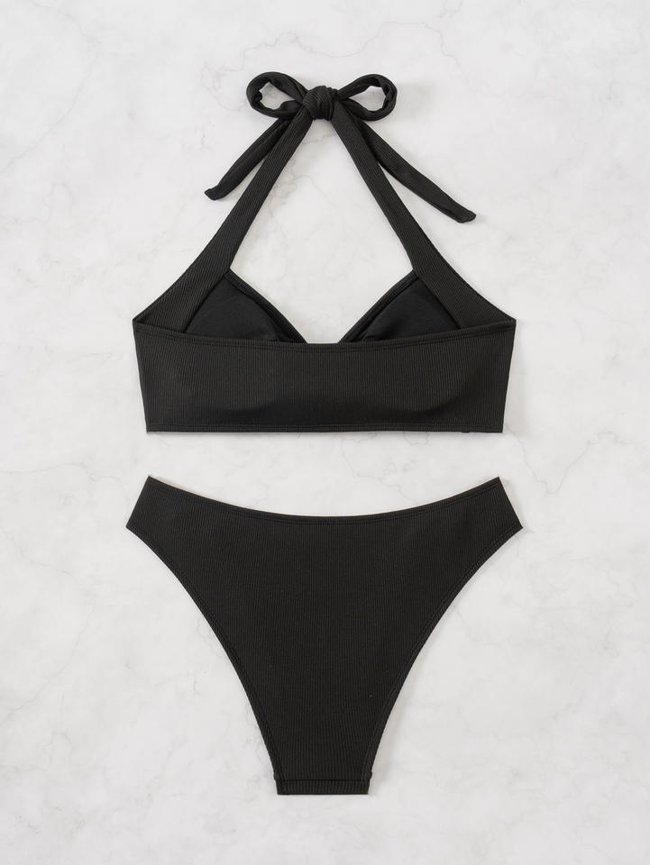 ชุดว่ายน้ำบิกินี่สุดเซ็กซี่สำหรับผู้หญิงชุดว่ายน้ำบิกินี่แบบผูกคอแบบผูกเอวต่ำชุดชุดว่ายน้ำสองชิ้นทรงสามเหลี่ยมด้านล่างสีล้วนสำหรับผู้หญิง