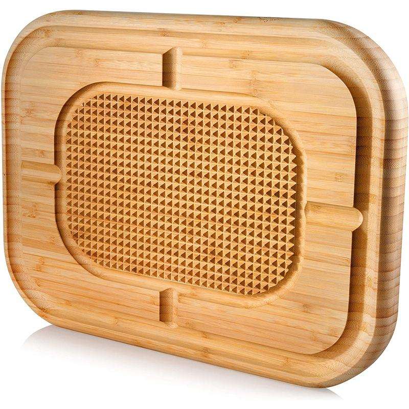 เขียงไม้ไผ่ร้อนแรง ทนทาน เป็นมิตรกับสิ่งแวดล้อม ขนาดใหญ่พิเศษ สำหรับหั่นเนื้อ ไก่งวง สเต็ก แบบสองด้าน พร้อมร่องรองน้ำ