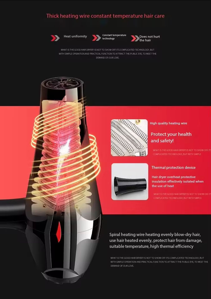 ไดร์เป่าผมแบบใช้ในบ้าน ลมร้อนลมเย็น ปลอดภัย ตัดได้ 3 ระดับความเร็ว/3 ระดับความร้อน ไดร์เป่าผมไฟฟ้าแบบไอออน
