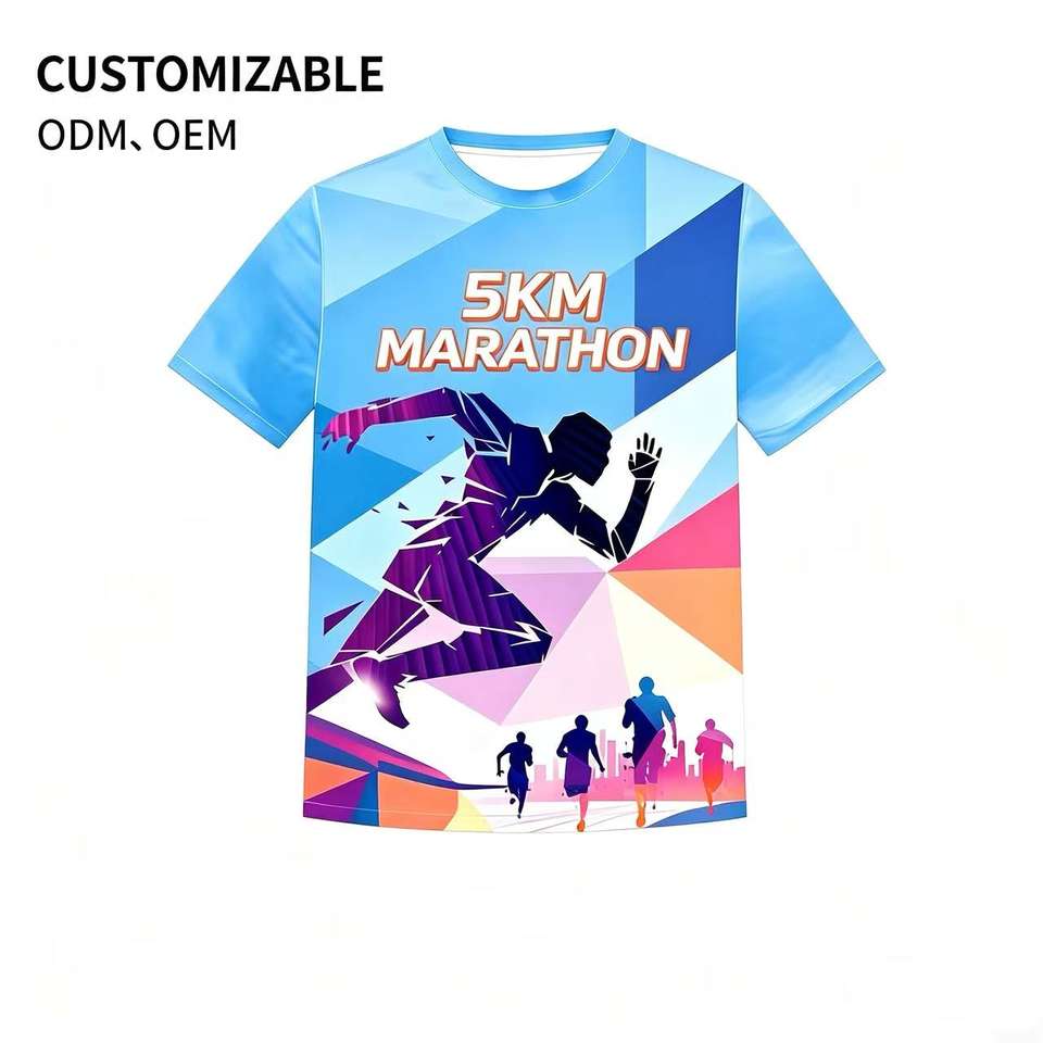 เสื้อยืดวิ่งมาราธอนพิมพ์ลายโลโก้ตามสั่งราคาถูก เสื้อยืดโฆษณาพิมพ์ลาย 3 มิติ เสื้อยืดโพลีเอสเตอร์เปล่าสำหรับงานซับลิเมชั่น