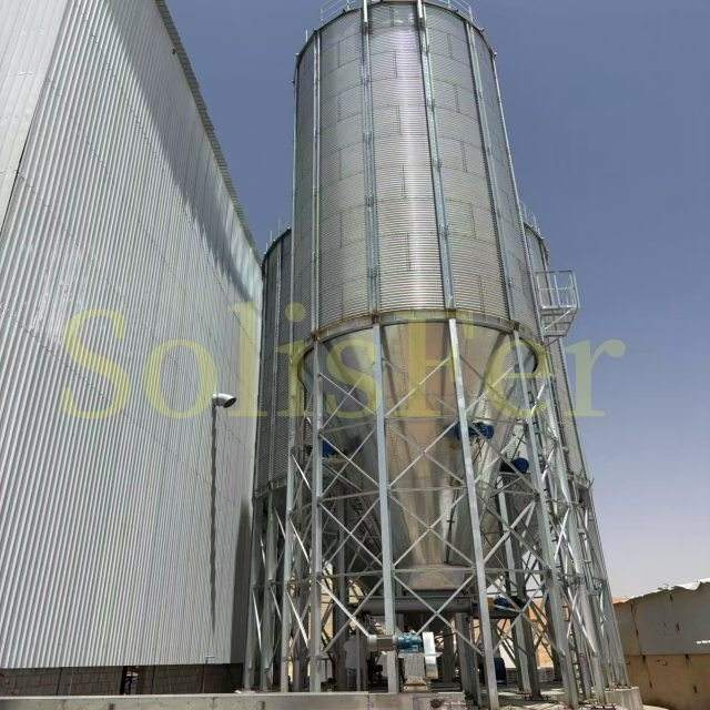 ไซโลเหล็กแบบใหม่สำหรับเก็บเมล็ดพืชในฟาร์มแอฟริกากำลังการผลิตไซโล500ตันชุบสังกะสีแบบจุ่มร้อน