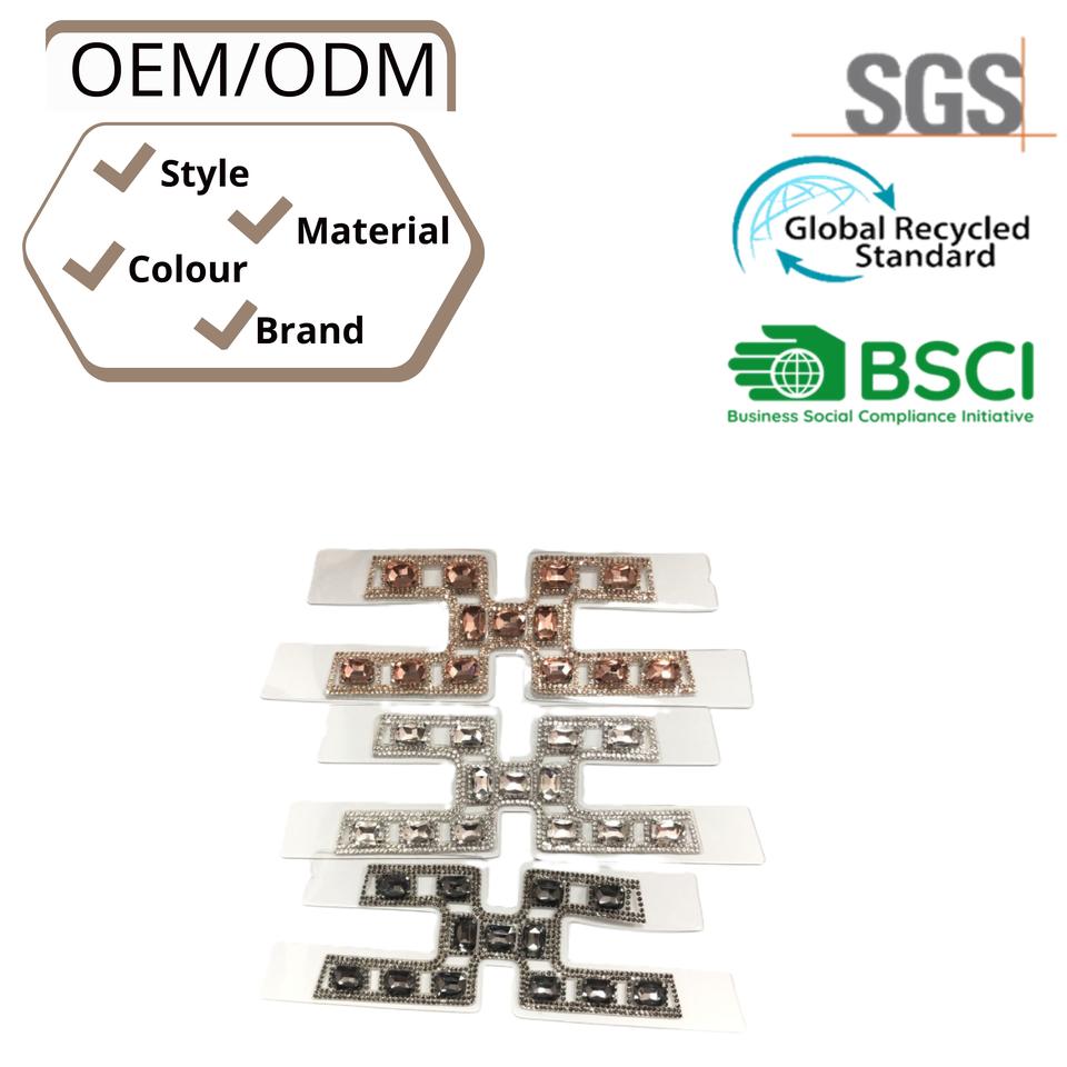 อุปกรณ์เสริมและวัสดุช่วยงานสำหรับงานกึ่งสำเร็จรูปบนรองเท้า TPU แบบใส รูปตัว H ประดับด้วยคริสตัลแบบติดร้อน