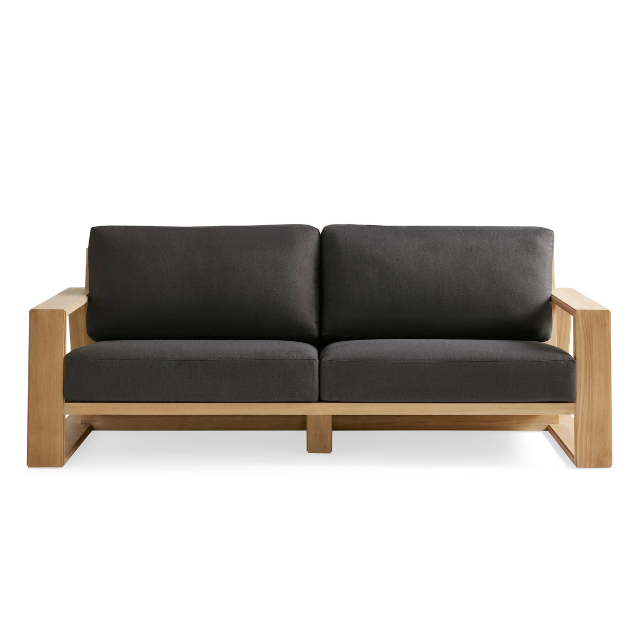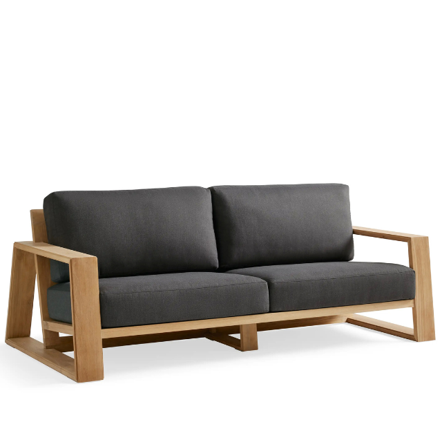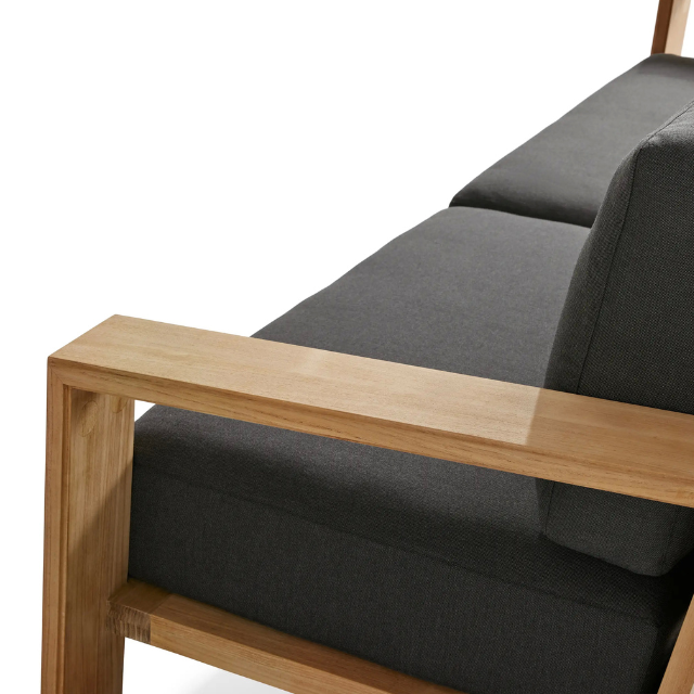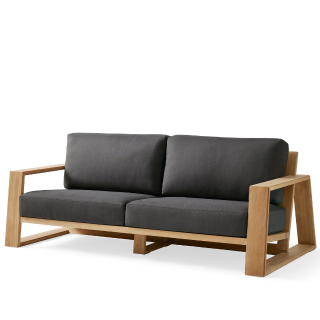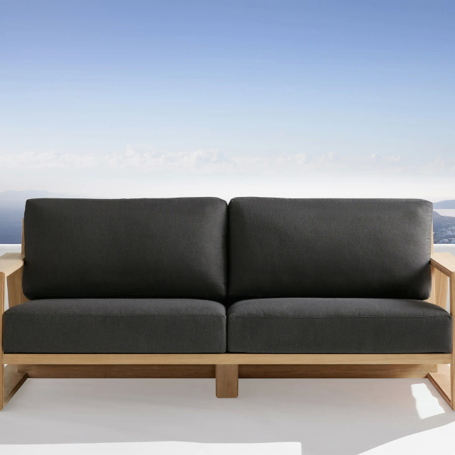 การขายเฟอร์นิเจอร์ร้อน: โซฟาสองที่นั่งสำหรับนั่งในห้องนั่งเล่นพร้อมขาไม้สักและที่นั่งเบาะนุ่ม