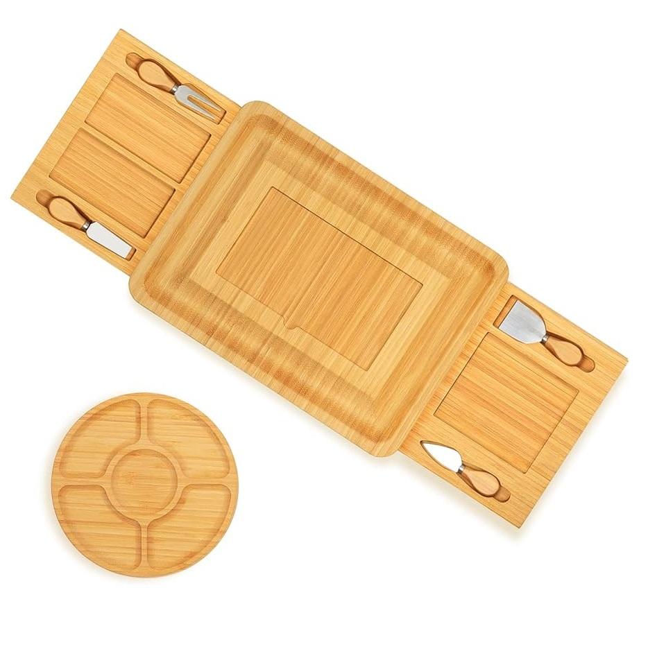 เขียงไม้ไผ่หั่นชีสพร้อมชุดมีดหั่นชีสจานขนมเครื่องครัวและอุปกรณ์สำหรับเครื่องดื่มอัจฉริยะทำจากสแตนเลส