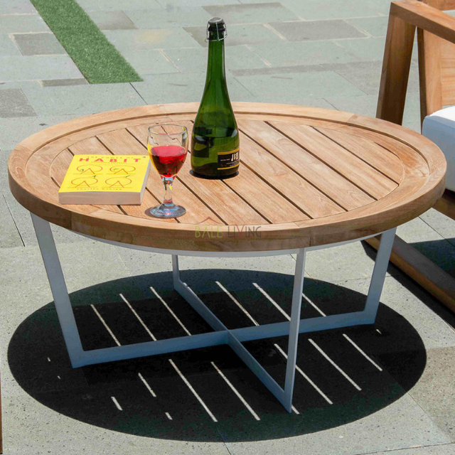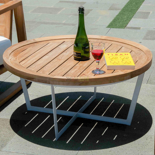Cattalina โต๊ะกาแฟทำจากไม้ทรงกลมฐานอลูมิเนียมดีไซน์ทันสมัยเหมาะสำหรับกลางแจ้ง
