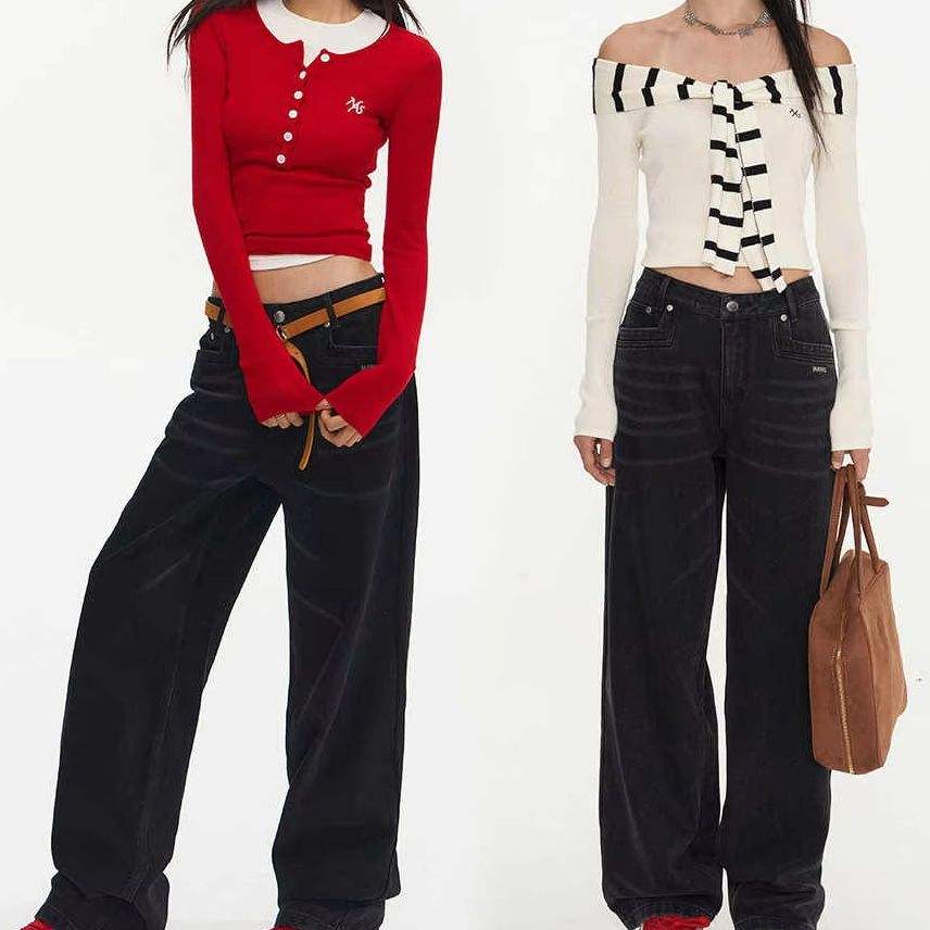 กางเกงขากว้างกางเกงยีนส์ สไตล์