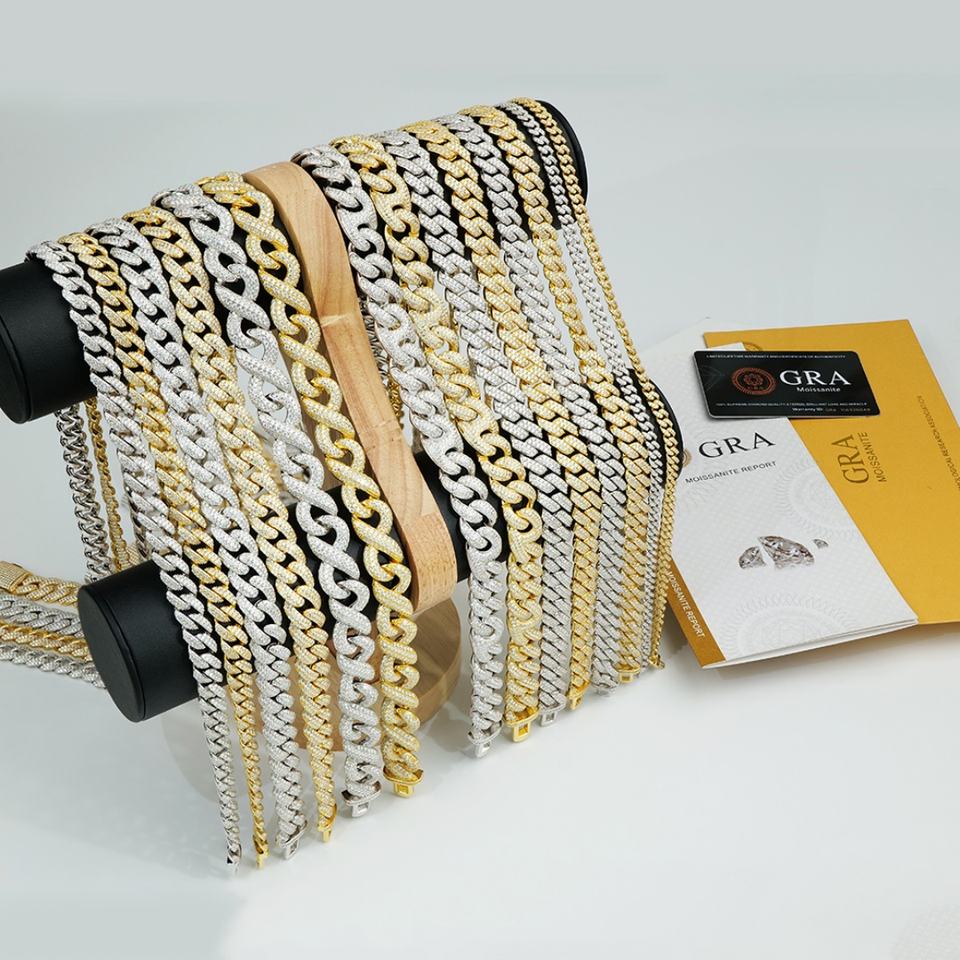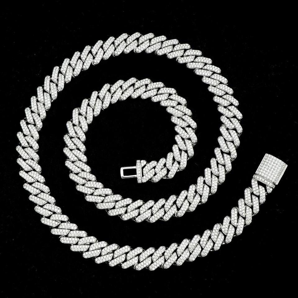 Hot-sale Unisex Necklace HIP HOP Style 925 Sterling Silver 12MM Width Rhodium Plated D Color VVS Moissanite Cuban Link Chain