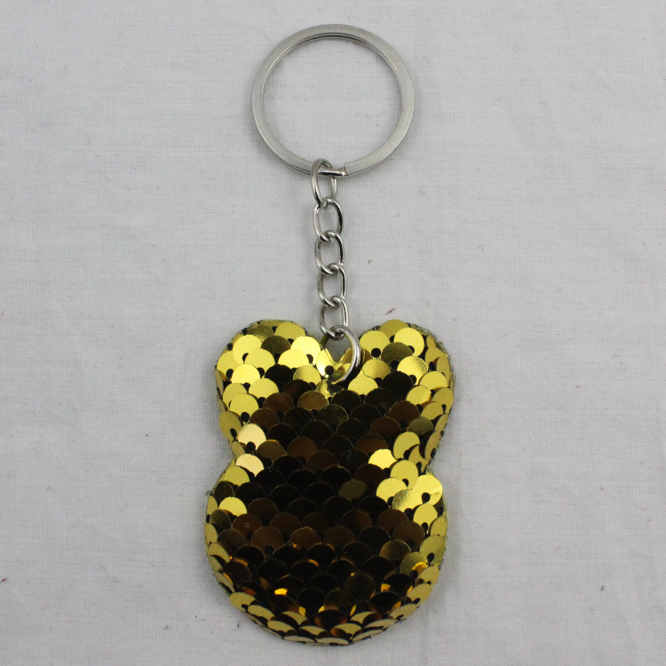 Hot sale 5cm fancy soft PVT muti-color sequin keychain for capsual