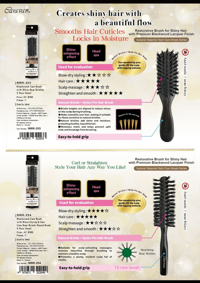 ชนิด:แปรงผมแบบแถวและแบบกลม