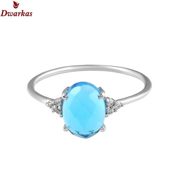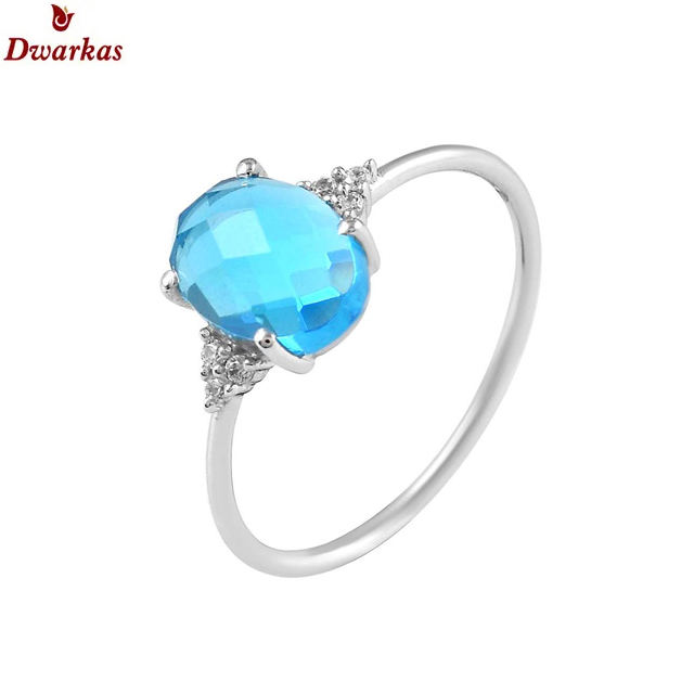 แหวนเพทายพลอยโทแพซธรรมชาติสีฟ้า925สำหรับงานแต่งงานแหวนพลอย