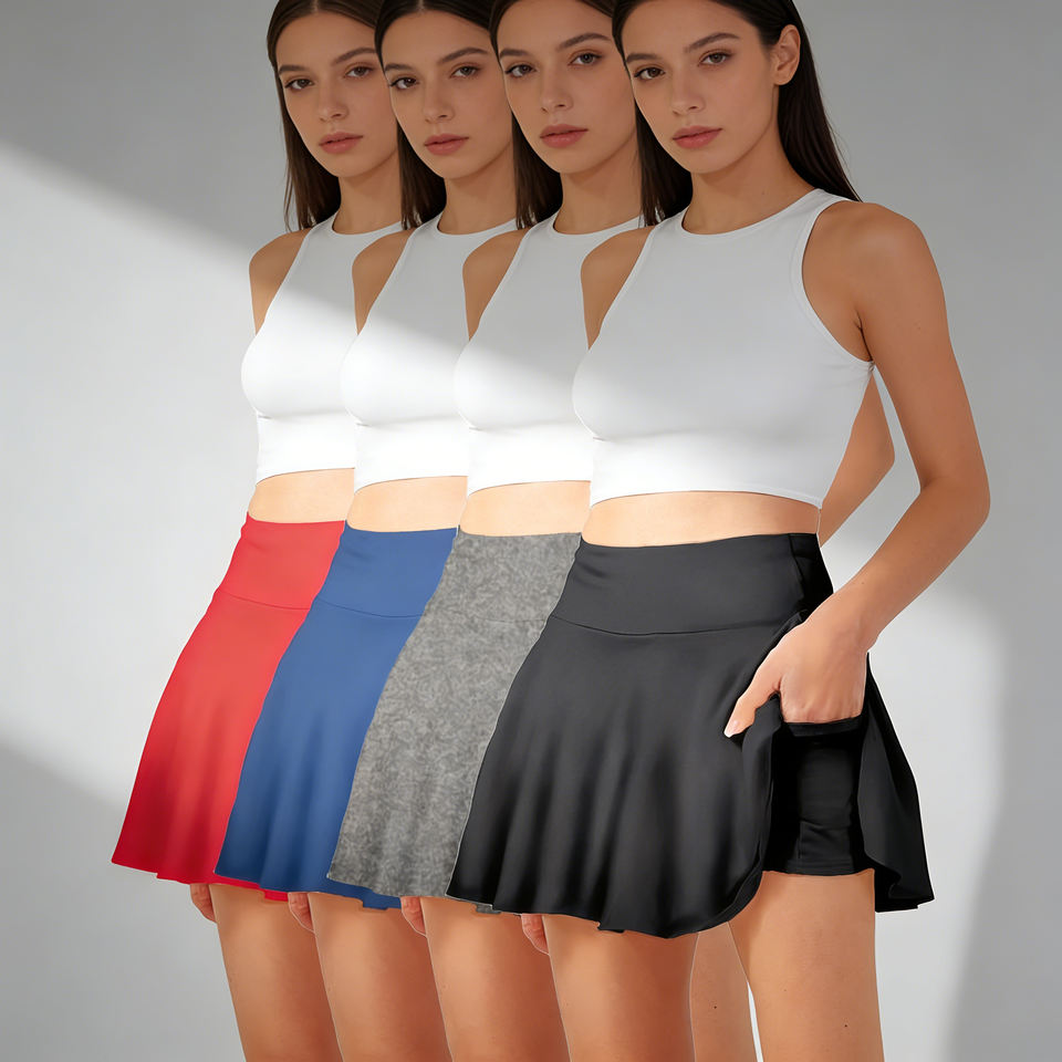 ลดราคาสุดฮอตที่ Temu ชุดกระโปรงกีฬาผู้หญิง 4 ชิ้น กระโปรงมินิพลีทเนื้อผ้าเบา พร้อมกางเกงซับในในตัว เหมาะสำหรับออกกำลังกาย โยคะ และใส่ในชีวิตประจำวัน