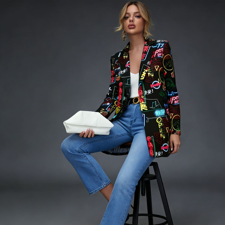 เสื้อเบลเซอร์ลายกราฟฟิตีสำหรับผู้หญิงจาก Temu ลดราคาสุดฮอต ปกเสื้อแบบปกเชิ้ต ติดกระดุมหน้า สไตล์สตรีทแวร์สุดเทรนดี้ เหมาะสำหรับใส่ลำลองหรือใส่ทำงาน