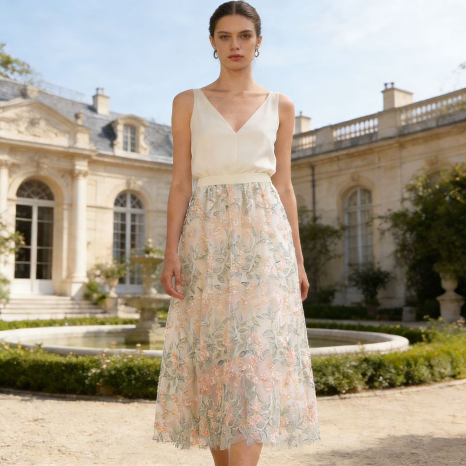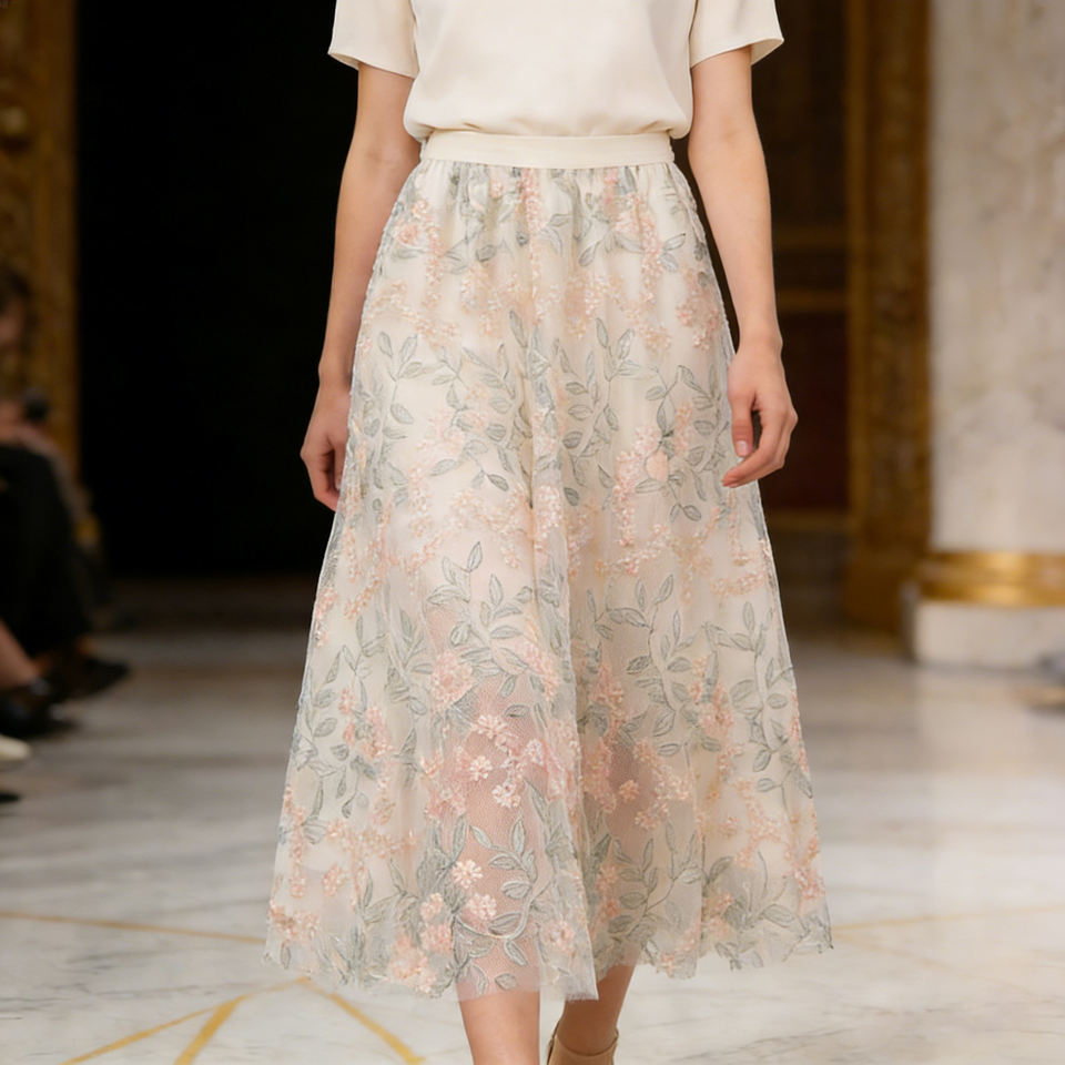 ลดราคาพิเศษ! กระโปรงปักลายดอกไม้สุดน่ารักสำหรับผู้หญิงจาก Temu ทรงเอไลน์เอวสูง ความยาวปานกลาง เหมาะสำหรับใส่ลำลอง งานปาร์ตี้ และชุดวันหยุด