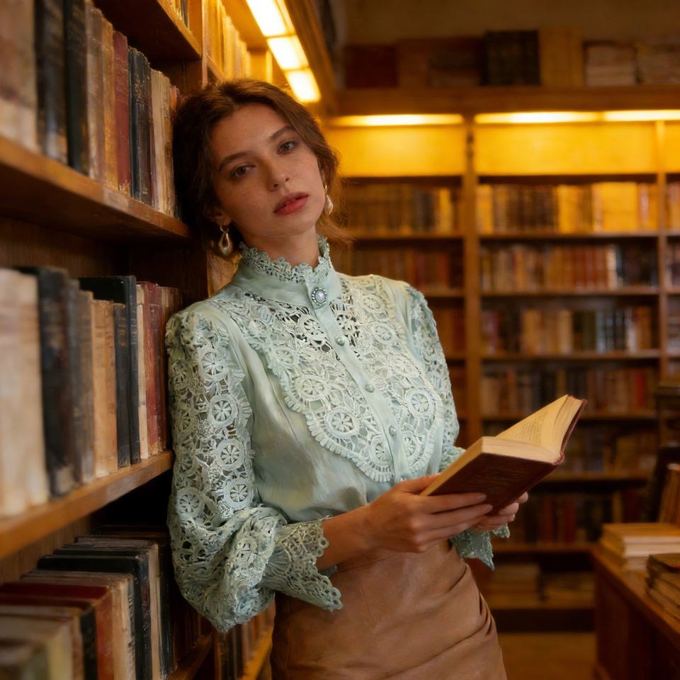 ลดราคาสุดฮอตบน Temu | เสื้อเชิ้ตลูกไม้ลายดอกวินเทจ คอตั้ง แขนพอง แต่งลายฉลุ เสื้อผู้หญิงสำหรับใส่ทำงานหรือเดินทาง