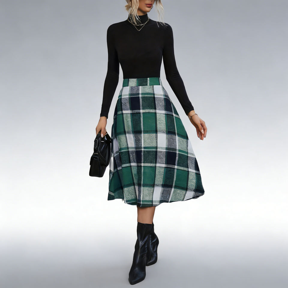 Hot sale on Temu Women Plaid Midi Skirt High Waist A Line Swing Skirt Casual Office Party Fashion Skirt For Spring And Fall