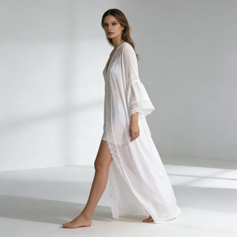 ลดราคาพิเศษ! ชุดเดรสยาวสีขาวลูกไม้สไตล์โรแมนติกสำหรับผู้หญิงจาก Temu แขนทรงระฆัง ผ้าบางเบา เหมาะสำหรับงานแต่งงาน ฮันนีมูน และโอกาสพิเศษ