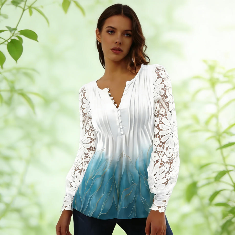 เสื้อเบลาส์แขนยาวพิมพ์ลายออมเบรสุดเก๋จาก Temu คอวีติดกระดุม สไตล์ลำลองสำหรับผู้หญิง ลดราคาสุดฮอต