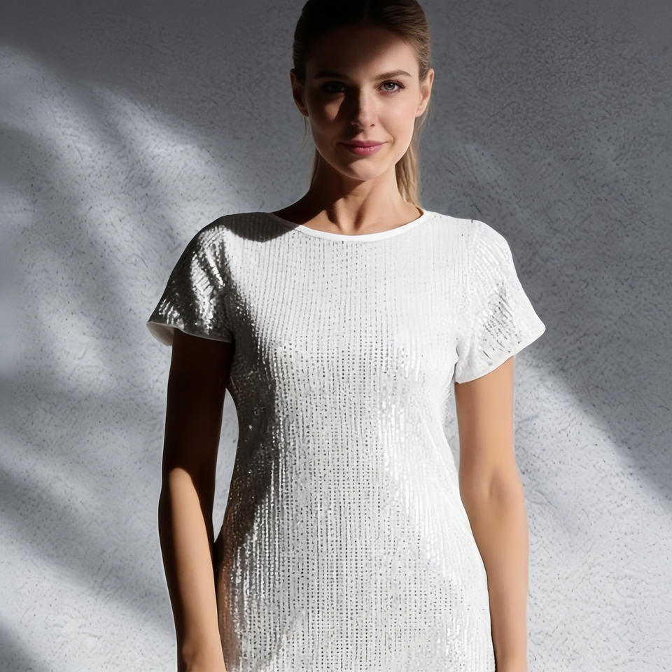 เดรสเสื้อยืดแขนสั้นปักเลื่อมสีขาว Temu ลดราคาสุดฮอต สำหรับผู้หญิง สวมใส่สบายๆ ไปงานปาร์ตี้หรืองานค็อกเทล