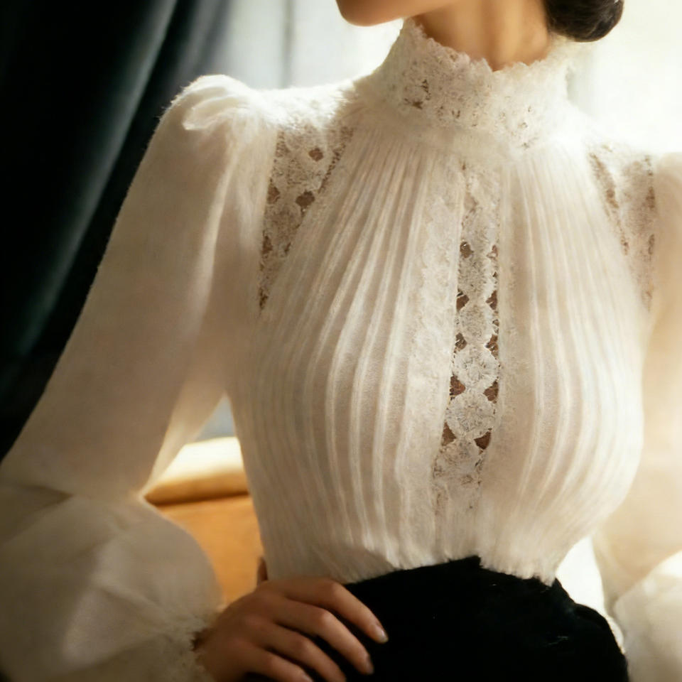 เสื้อเบลาส์คอสูงสีขาวสำหรับผู้หญิง แบรนด์ Temu ลดราคาสุดฮอต แขนยาว แต่งระบาย ดีไซน์สวยหรู เหมาะสำหรับใส่ทำงานหรือใส่ลำลอง สวมใส่สบายทุกวัน