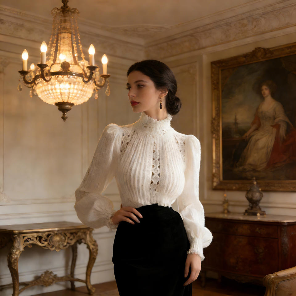 เสื้อเบลาส์แขนยาวคอสูงสีขาวสำหรับผู้หญิงจาก Temu ลดราคาสุดฮอต ดีไซน์ระบายสวยหรู เหมาะสำหรับใส่ทำงานหรือใส่ลำลอง สไตล์หลวมๆ แฟชั่นทันสมัย