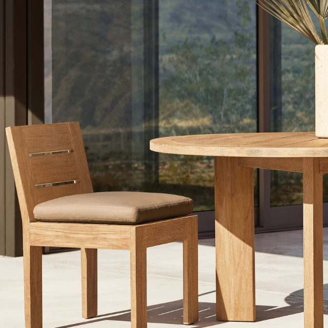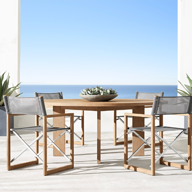 โต๊ะกลมสำหรับรับประทานอาหารกลางแจ้ง ลดราคาพิเศษ ผลิตจากไม้สักที่เป็นมิตรกับสิ่งแวดล้อม คุณภาพดีและทนทาน