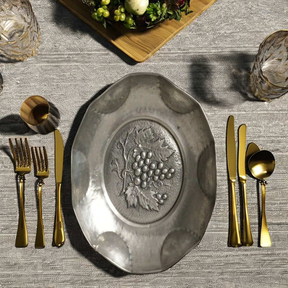 ถาดเสิร์ฟโลหะมันวาวพร้อมลายนูนทรงเรขาคณิตเหมาะสำหรับการจัดห้องรับประทานอาหารที่ทันสมัยและการชุมนุมในวันหยุด