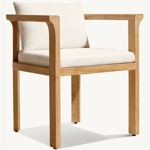 เก้าอี้เดี่ยวขายดี ผลิตจากไม้สักคุณภาพสูง ทนทาน พร้อมที่วางแขน สำหรับใช้งานกลางแจ้ง บุด้วยโฟมนุ่มและคุณภาพดี