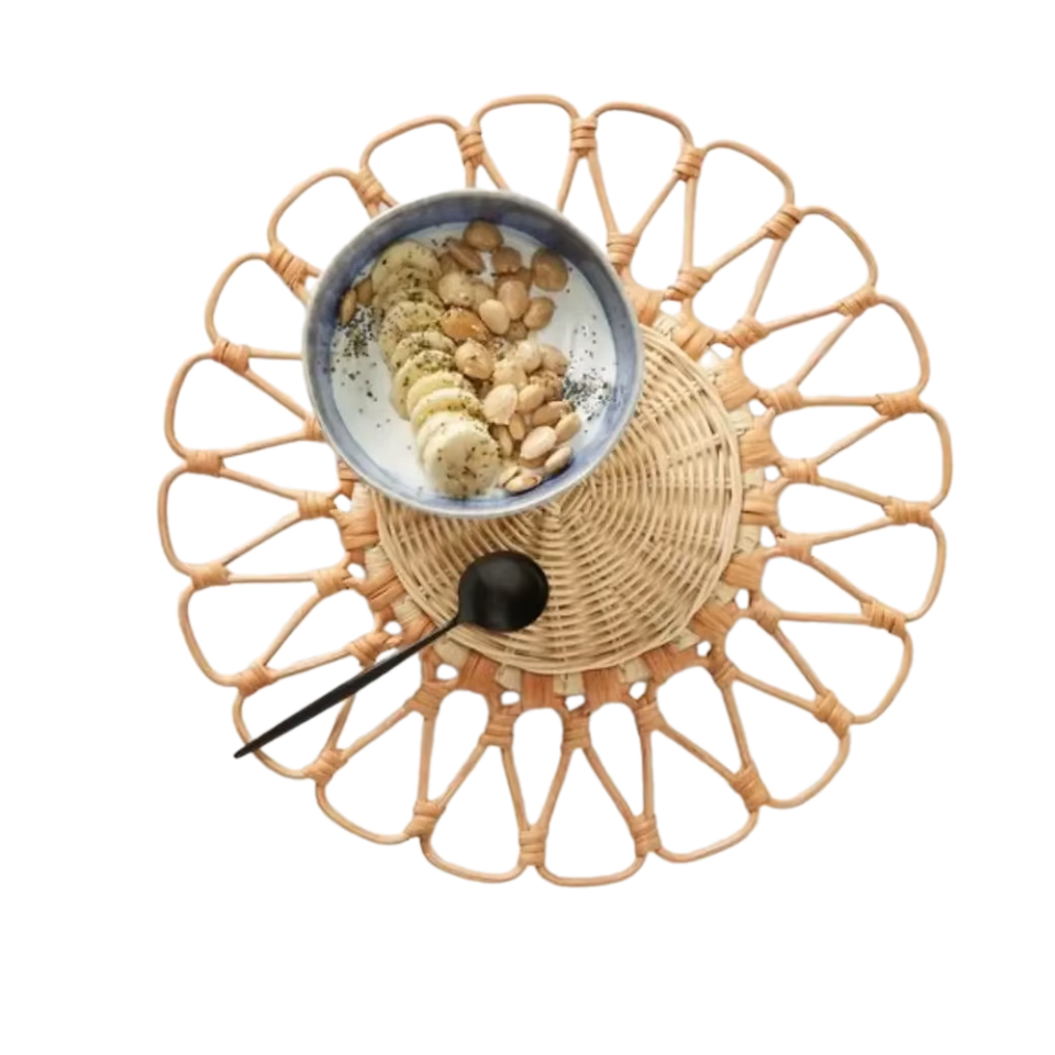 จานหวายธรรมชาติถาดไม้ไผ่สานมือดีไซน์ดอกไม้สไตล์เวียดนามสำหรับงานแต่งงานขายส่งเวียดนาม