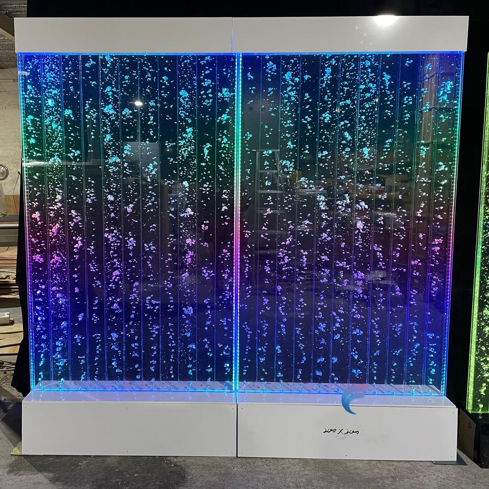 ผนังน้ำตกฟองอากาศ LED หลายสี กรอบสแตนเลสแบบกระจกสั่งทำพิเศษ ขายดี