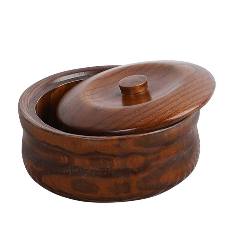 หม้อไม้ธรรมชาติเก็บความร้อนฝาหม้อไม้