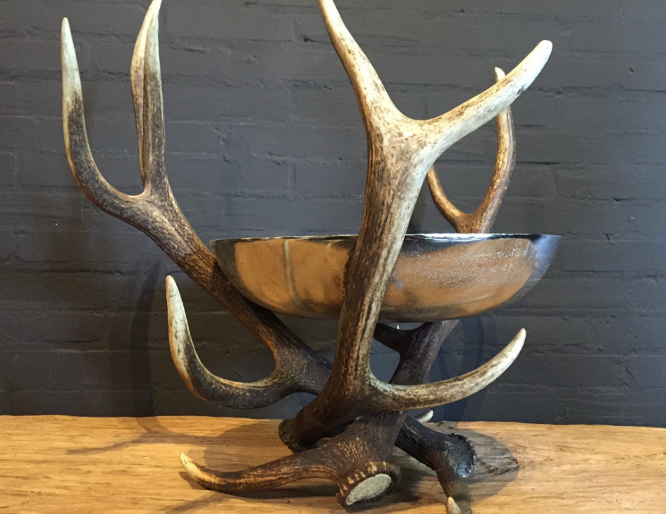 ชามเขากวางยืนทำจากโลหะสำหรับตกแต่งโต๊ะงานแต่งงานผลไม้ของหวานผลไม้แห้งเสิร์ฟบนโต๊ะรับประทานอาหารในบ้านห้องครัว