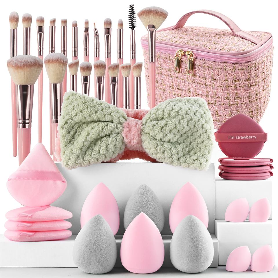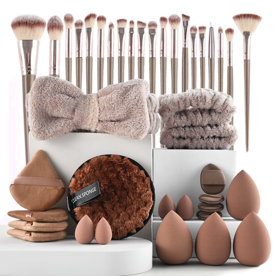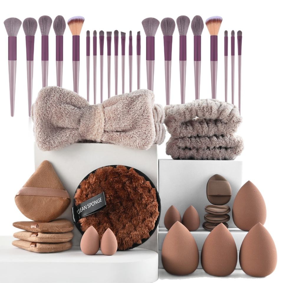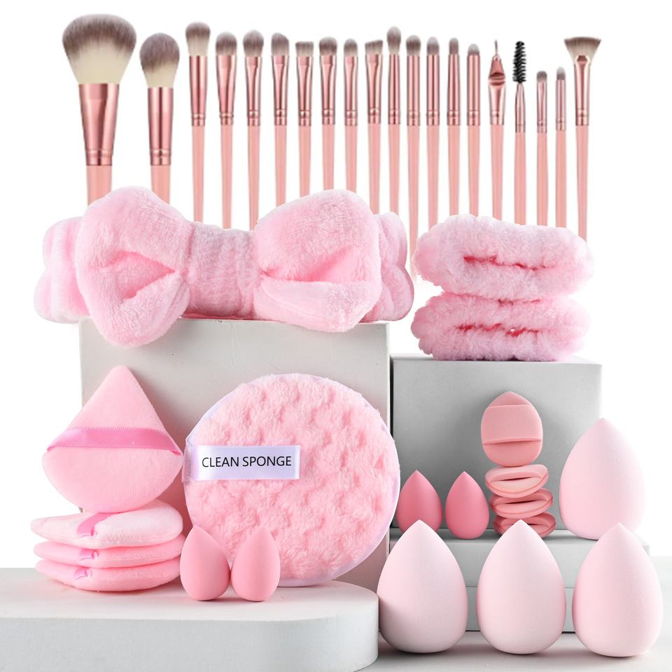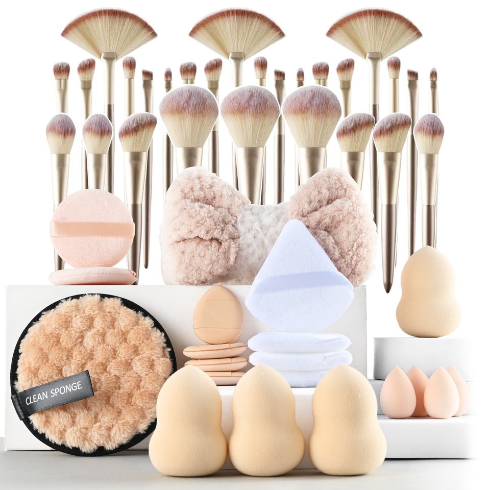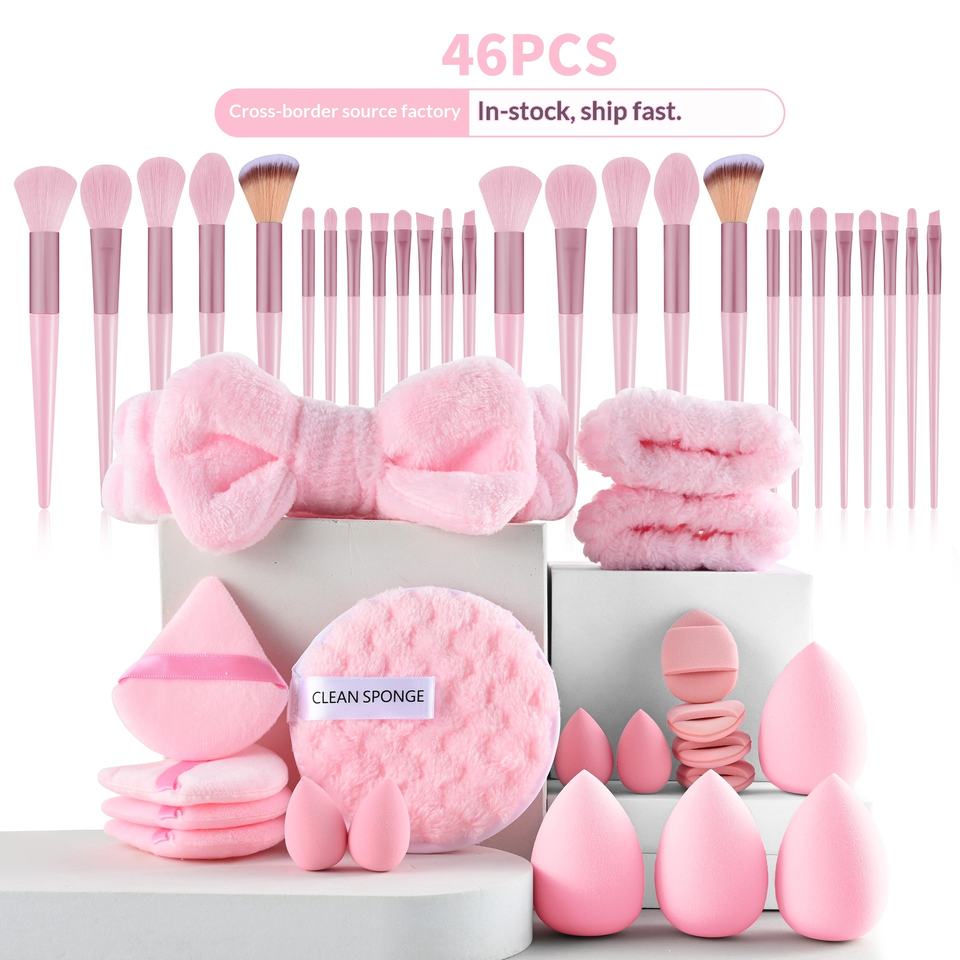 ชุดแปรงแต่งหน้า 46 ชิ้น ขายดี ชุดพัฟแต่งหน้า อุปกรณ์เสริมความงาม แปรงล้างหน้า แปรงไนลอนและพลาสติก