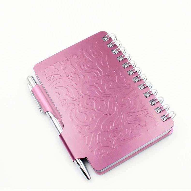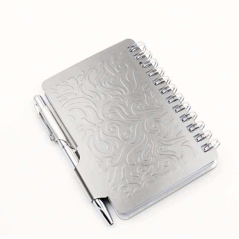 สมุดโน้ตพกพาอะลูมิเนียมขายดี สมุดโน้ตเปลือกอะลูมิเนียมพร้อมปากกา สมุดโน้ตเปลือกโลหะอะลูมิเนียมแบบขด